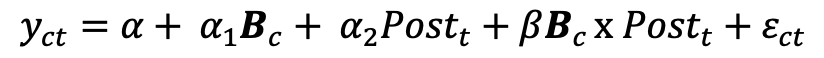 Finally, two recent academic publications (in journals that have ABDC rank of A*) model steel tariffs introduced in 2002 (Lake and Liu, 2025) and 2018-19 (Flaaen and Pierce, 2024) on US employment. The analytical methodology used in these analyses is the most rigorous and uses the most detailed data. A Difference-in-Difference (D-in-D) approach controls for two sets of differences as a means of identifying the causal effect of a change in policy on groups i) directly affected by the policy change and ii) not directly affects by the policy change. In the case of the analysis by Lake and Liu (2025), the first difference is the pre and post time difference (subscript t), and the second difference is exposure to steel tariffs (subscript c). The equation below outlines the intuition behind the regression analysis.